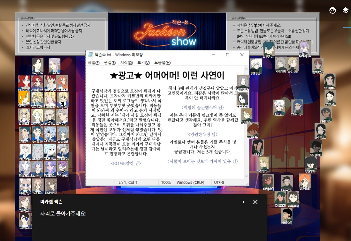 ▶ 이벤트05.잭슨 쇼 (사전참여 & 본방공지) 보기