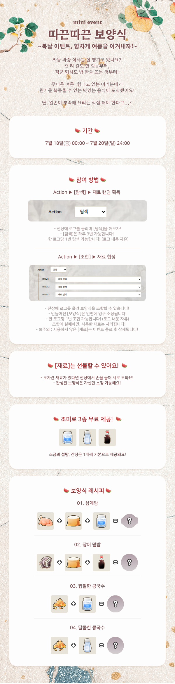 ▶ 미니이벤트07. 따끈따끈 보양식 / 레시피, 아이템 보러가기
