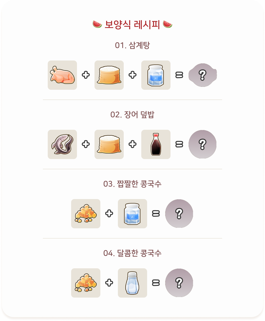 미니이벤트07. 따끈따끈 보양식 / 레시피, 아이템