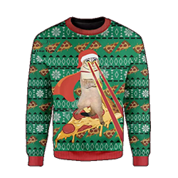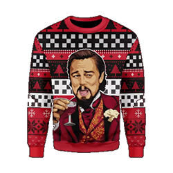 이상한 어글리 스웨터. 익숙한 사람이 그려져있다. |