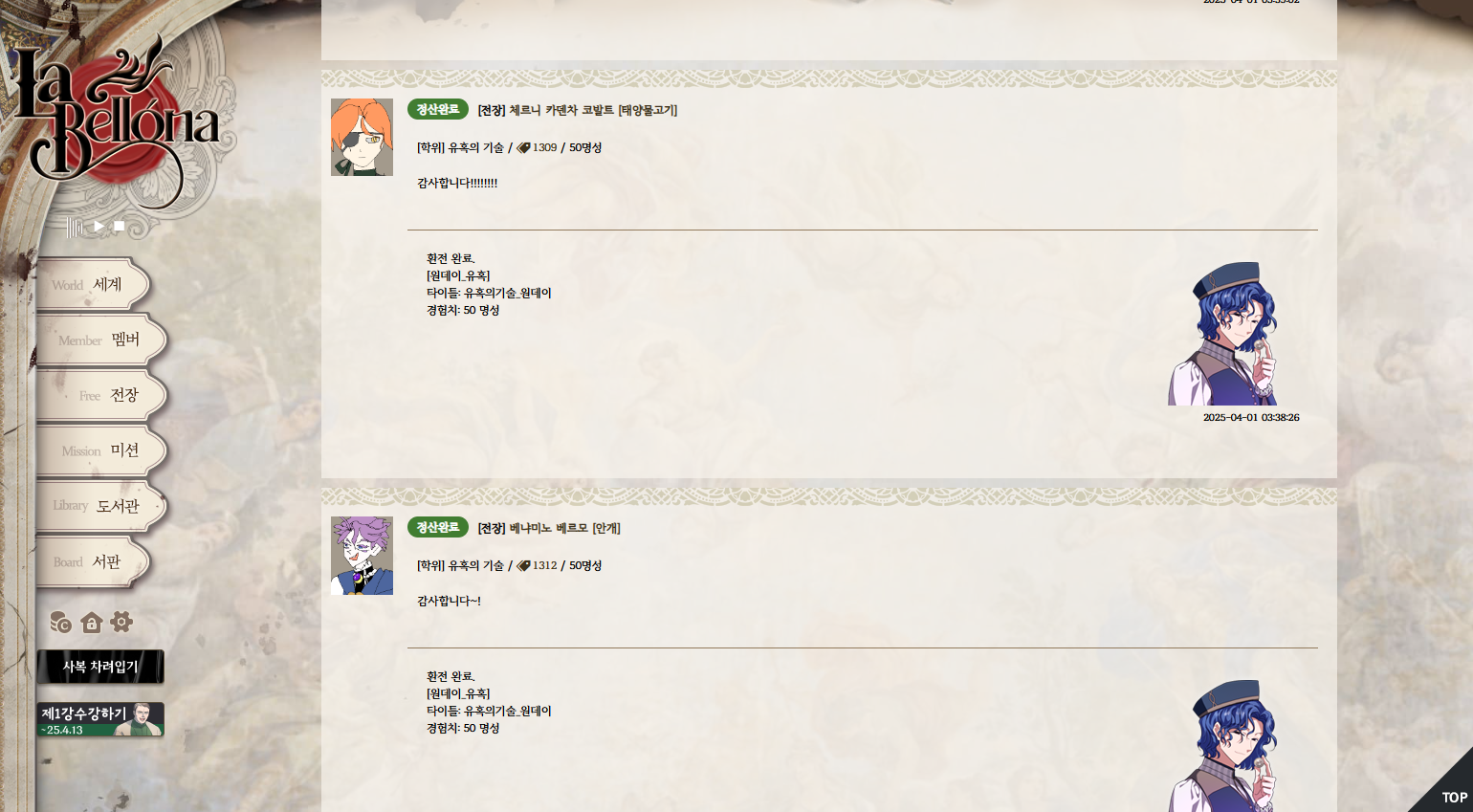 | 거장 디 카프리오가 역전의 용사들에게 선물한 초상화. 4월 1일 전리품. 웃기다. (이벤트 후 각 멤버에게 초상화 아이템 전달) |